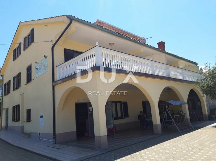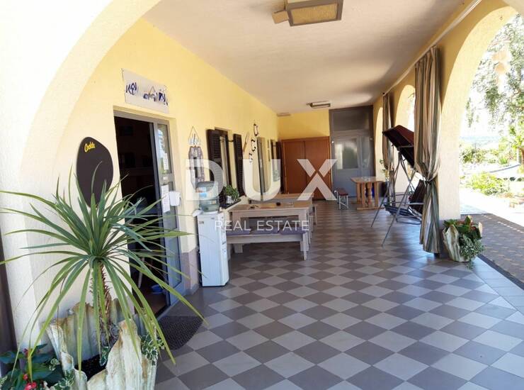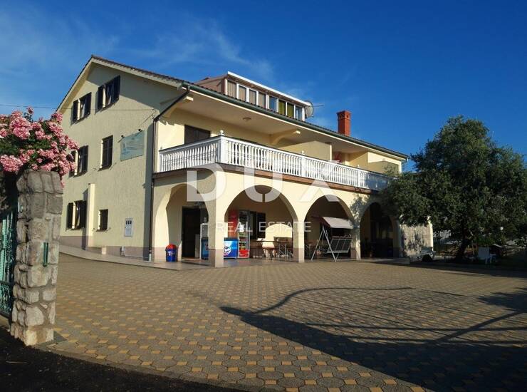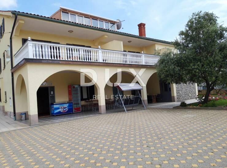 OTOK KRK, Malinska, kuća za turizam 600 m2. Sastoji se od 18 soba, jednog velikog dnevnog boravka, 3 manja dnevna boravka, 8 kupaonica sa WC-om i 2 WC-a. Lijepo uređena okućnica od 1330 m2.