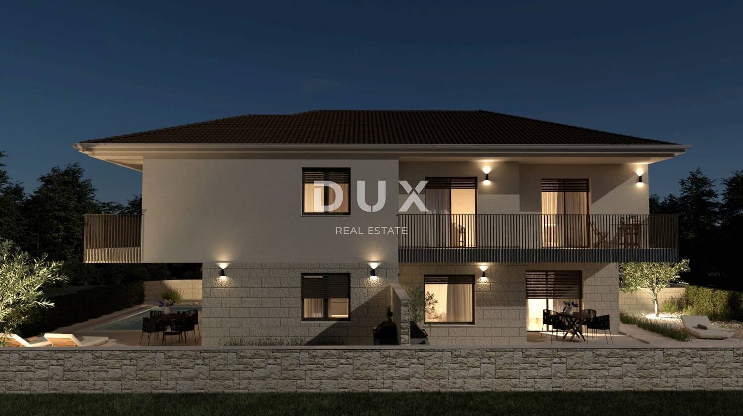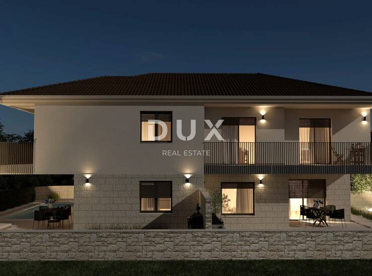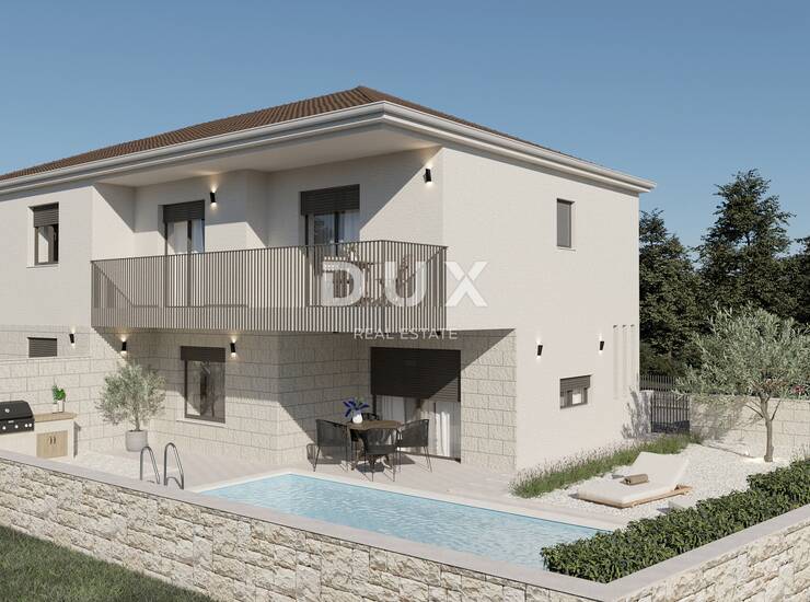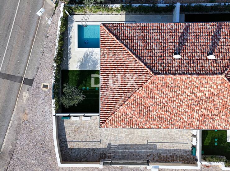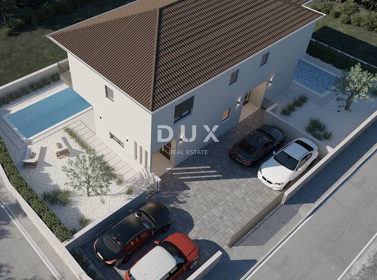 Prodaje se moderna dvojna kuća, izgrađena 2025. godine, smještena u mirnoj zoni u okolici Malinske, na samo 1,5 km zračne linije od mora. Idealna za obitelj ili investiciju, ova nekretnina nudi visoki standard gradnje i opreme te mediteranski uređen vrt s bazenom.