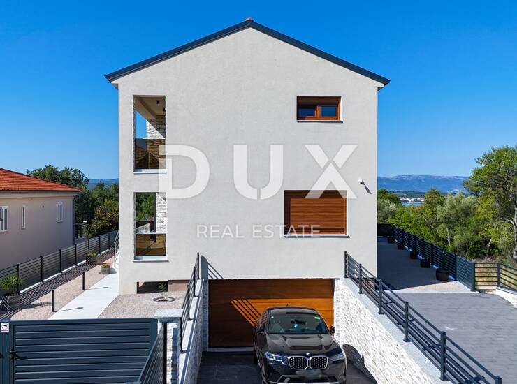 Malinska, prodaja nove kuće s pogledom, okućnicom i bazenom!