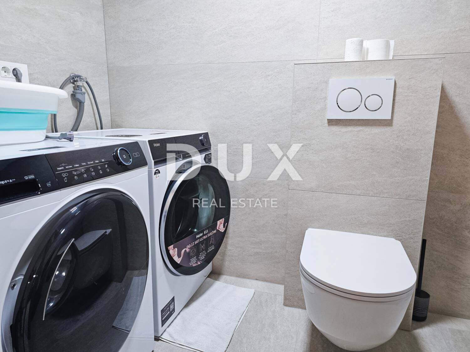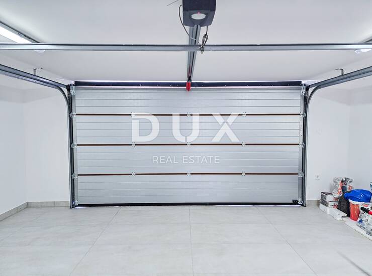 Ulazimo u suterenski dio, vrlo funkcionalan i pun mogućnosti. Prvo što će Vas oduševiti je garaža, dovoljno velika da primi dva automobila, jedan veći i jedan manji. Odmah u nastavku nalazi se prazan prostor, kojeg možete pretvoriti u prostor za degustacije vina, "gaming room" ili privatnu teretanu, kako god najbolje odgovara Vašem načinu života. Tu je i praonica te tehnička prostorija s dizalicom topline i spremištem, uredno i promišljeno raspoređeno.