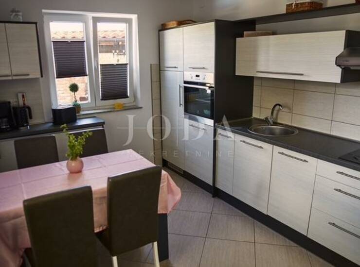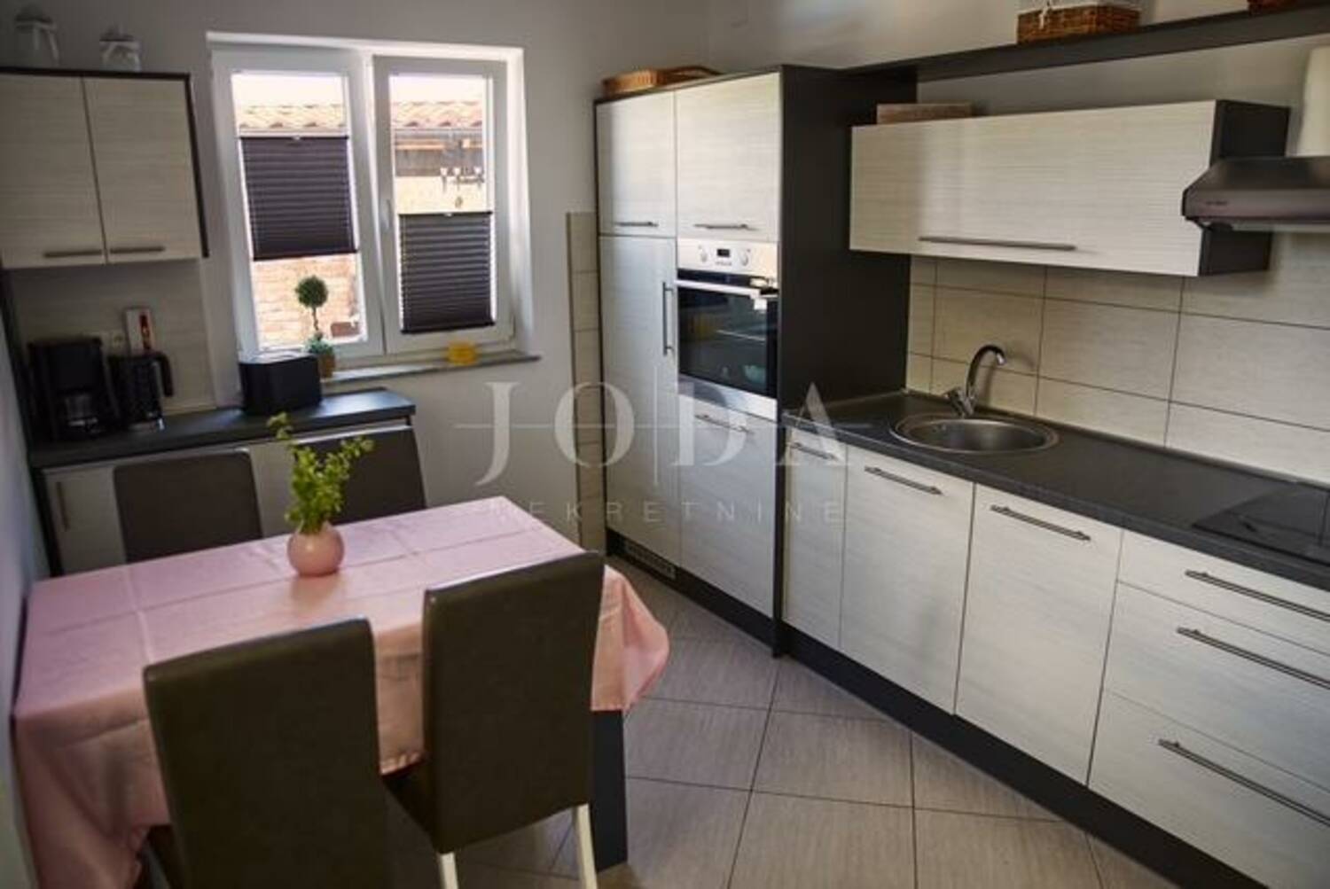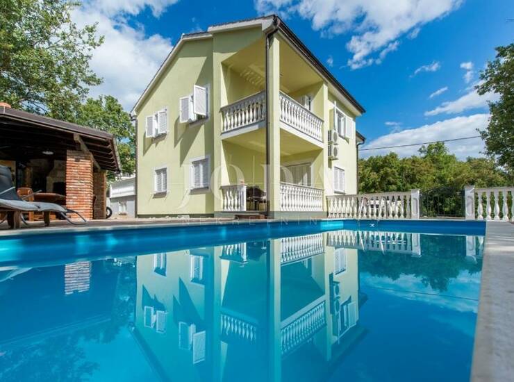 Kuća je smještena u mirnom okruženju obiteljskih kuća te se sastoji od suterena, prizemlja i kata. Na parceli površine 648 m² nalaze se grijani bazen, roštilj i natkriveni prostor za druženje, dok su osigurana četiri parkirna mjesta.