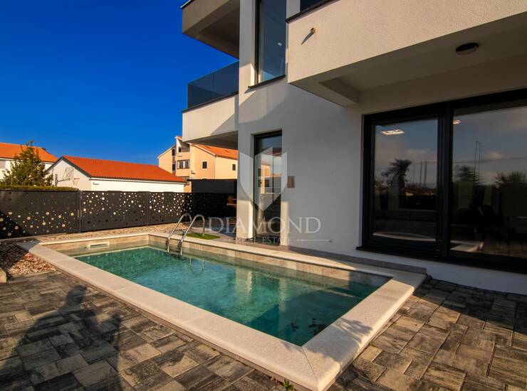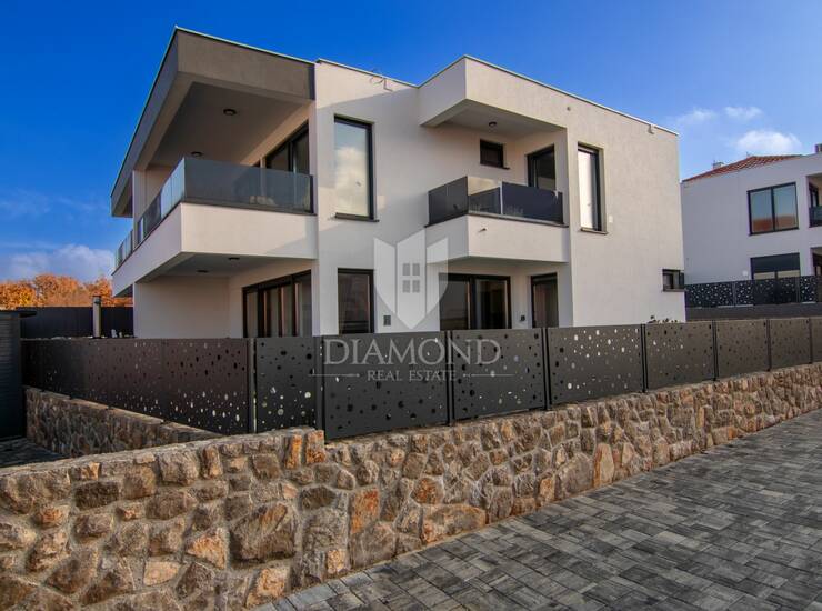 Na prodaju je moderna dvojna kuća s bazenom i pogledom na more u Malinskoj na otoku Krku, smještena na izuzetno traženoj i mirnoj lokaciji, idealnoj za život, odmor ili kao investicija u turistički najam visoke kategorije. Ova luksuzna dvojna kuća u Malinskoj odlikuje se suvremenom arhitekturom, vrhunskom opremom i funkcionalnim rasporedom, a nalazi se u blizini mora, plaža i svih sadržaja po kojima je Malinska jedna od najpoželjnijih destinacija za kupnju nekretnine na otoku Krku.