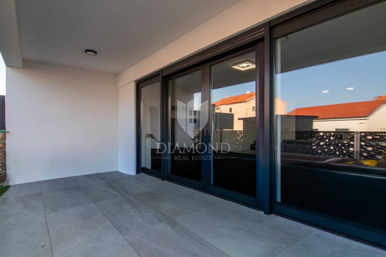 Prostrani dnevni boravak otvorenog koncepta povezan je s kuhinjom i blagovaonicom te velikim staklenim površinama koje prostoru daju obilje prirodnog svjetla i omogućuju lijep pogled na more i Malinsku. Iz dnevnog dijela izlazi se na uređenu terasu i okućnicu s privatnim bazenom, stvarajući savršen prostor za opuštanje, sunčanje i uživanje u mediteranskom načinu života. Kombinacija bazena, pogleda na more i moderne arhitekture čini ovu dvojnu kuću s bazenom u Malinskoj i