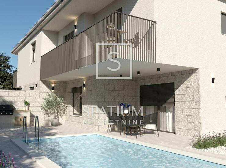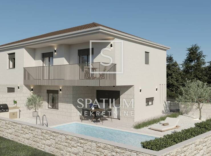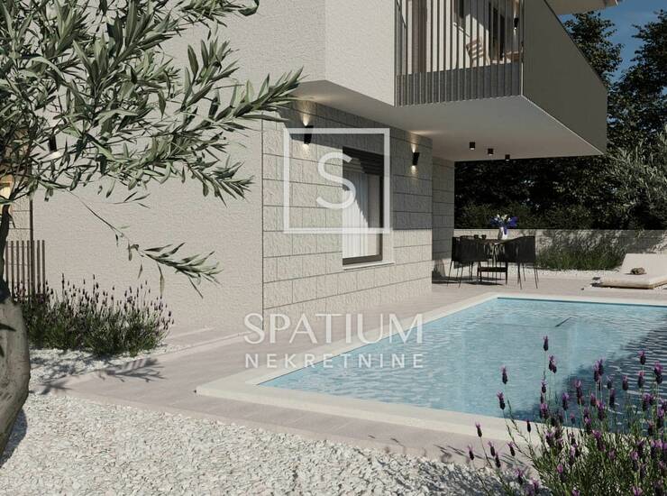 Nekretnina pripada i okućnica od 150m2 ozelenjena mediteranskim biljem i stoljetnim maslinama, te grijani bazen za uživanje.