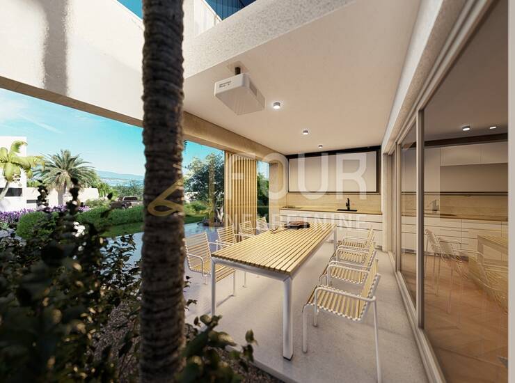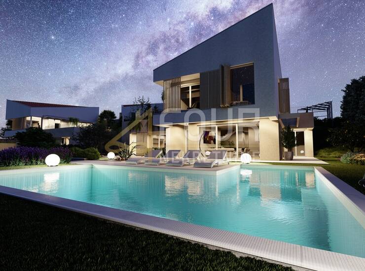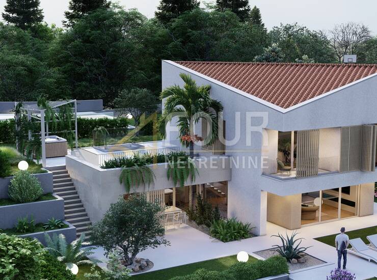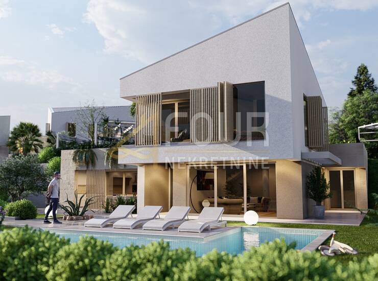Vila je opremljena Daikin klima uređajima, podnim grijanjem i aluminijskom stolarijom, a u dvorištu se nalazi grijani bazen površine 40 m2 koji dodatno podiže doživljaj luksuznog mediteranskog života.