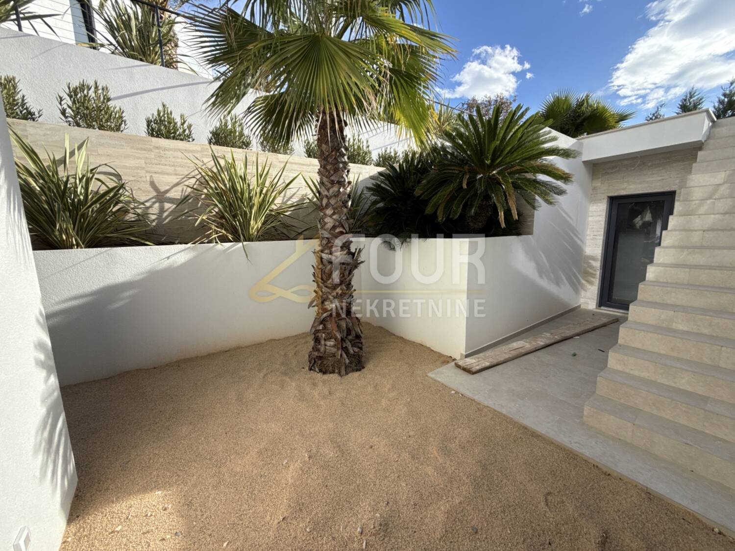 U prizemlju kuće nalaze se tri spavaće sobe, svaka sa svojom kupaonicom, dodatni WC, playroom, hodnik te strojarnica/praonica, ukupne zatvorene površine 96,67 m2. Vanjski prostor uključuje natkrivene lođe i terase od ukupno 153,73 m2, idealne za uživanje na svježem zraku i obiteljsku rekreaciju.