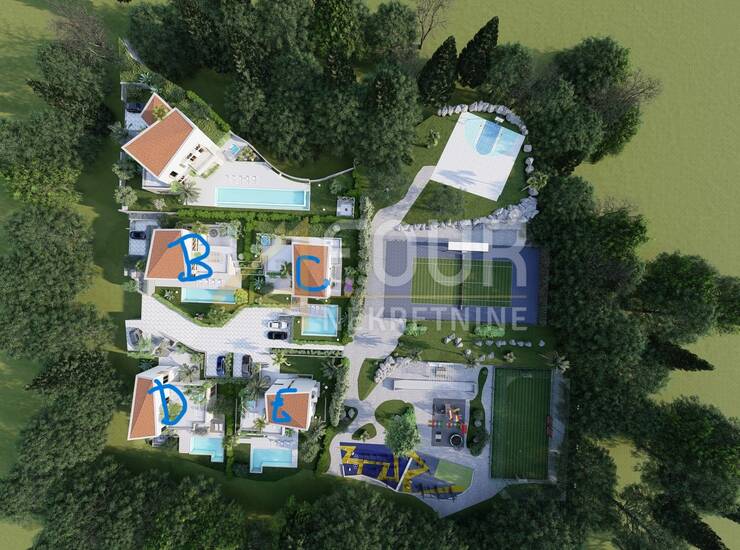 Kompleks je koncipiran poput resorta, a vlasnici kuća imaju pristup teniskom, košarkaškom i nogometnom terenu, te dječjem igralištu.
