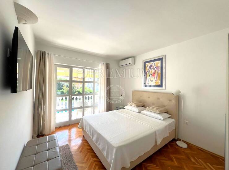 Apartman je u potpunosti adaptiran, moderno namješten i opremljen kvalitetnim materijalima. Aluminijska stolarija i klimatizacija za grijanje i hlađenje osiguravaju dugoročnu udobnost i bezbrižnost.