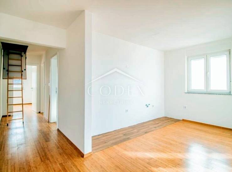 Sastoji se od prostranog dnevnog boravka s kuhinjom i blagovaonicom, dvije spavaće sobe, kupaonice te lođe površine 7,67 m². Posebnu vrijednost daje uređeno potkrovlje do kojeg vode montažne tavanske stepenice, čime se dodatno povećava korisna površina i funkcionalnost prostora.