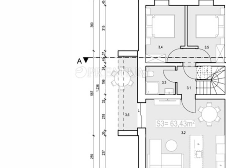 Apartman površine 64 m² smješten je na atraktivnoj lokaciji, svega 400 m od mora i uređenih plaža.
