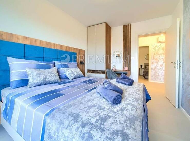 Apartman ima PVC stolariju s ALU roletnama, podno grijanje, klimatizaciju i energetski razred A.