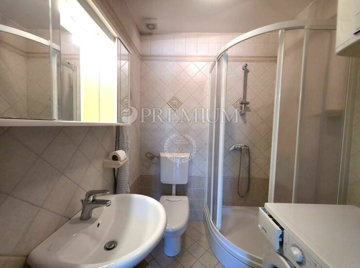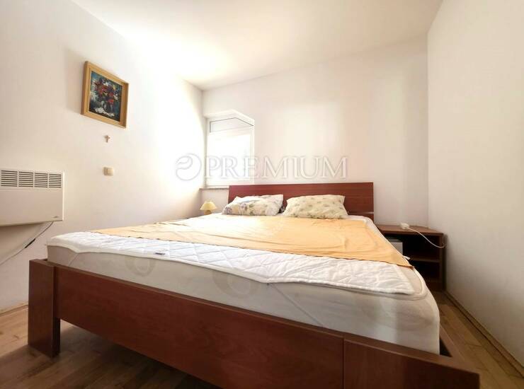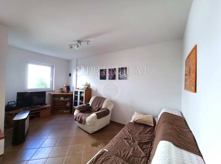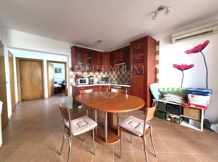 Malinska, otok Krk – prodaja dvosobnog apartmana u prizemlju, netto površine 62 m², s privatnim vrtom od 100 m² i bazenom. Apartman se sastoji od ulaznog hodnika, dvije spavaće sobe, kupaonice, dodatnog toaleta, kuhinje s blagovaonicom i dnevnog boravka s izlazom na natkrivenu terasu.