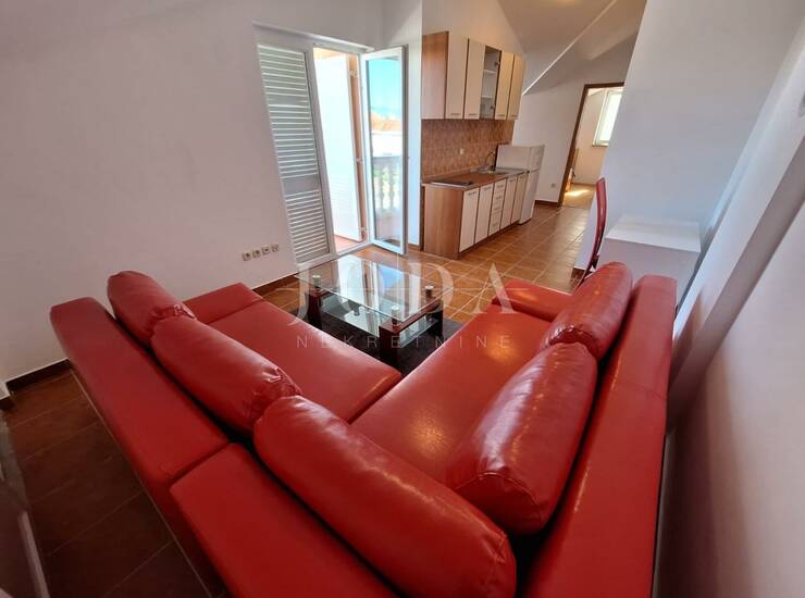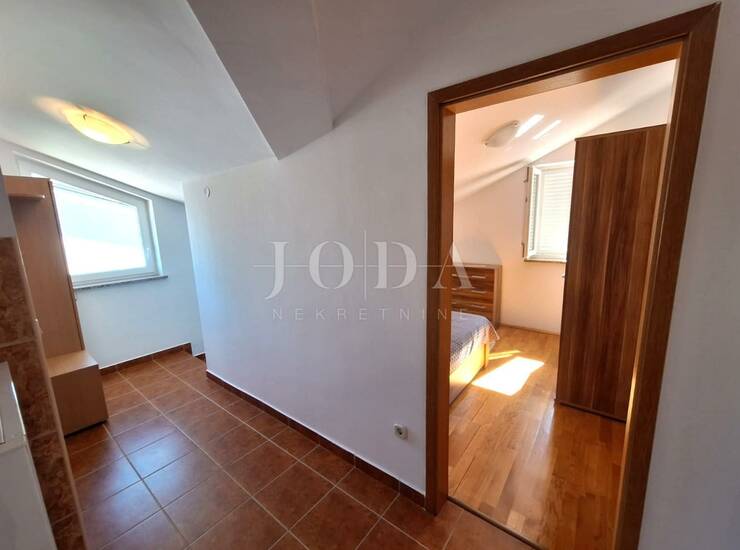 Malinska, prodaje se nekretnina površine 93,83 m2, u naravi dva jednosobna apartmana. Stan na prvom katu se sastoji od jedne spavaće sobe, dnevnog boravka, kuhinje i blagovaone, hodnika, ostave i balkona. Stan u potkrovlju se sastoji od jedne spavaće sobe, hodnika, kupaone, kuhinje, dnevnog boravka, balkona i spremišta.