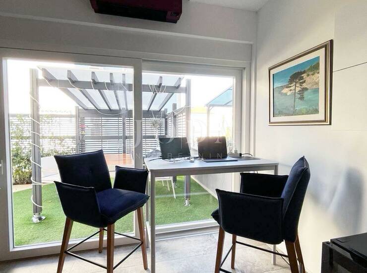 Prodaje se novouređeni apartman u Malinskoj stambene površine 60.22 m2 s vlastitom okućnicom. Apartman se nalazi u prizemlju i sastoji se od ulaznog hodnika, spremišta, dvije spavaće sobe, dnevnog boravka s kuhinjom i blagovaonom i kupaonicom. Apartman ima lijepo uređenu okućnicu površine 96 m2. Interijer i eksterijer je napravljen dizajnerski, namještaj je po mjeri sa ambijentalnom rasvjetom, smart tehnologija s video nadzorom vanjskog prostora, a posebnost apartmana su visoki stropovi koji stvaraju osjećaj otvorenosti. Pripadaju mu dva parkirna mjesta ukupne površine 23 m2.