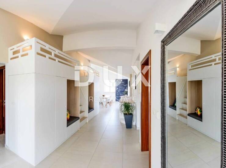 Na jednoj od najpoželjnijih lokacija u Malinskoj prodajemo luksuzni četverosobni stan sa dvije terase s prekrasnim pogledom na more. Apartman površine 118,25 m2 se nalazi na drugom katu i sastoji od ulaznog prostora, dnevnog boravka s opremljenom kuhinjom i blagovaonicom, četiri spavaće sobe, dvije kupaonice, dodatnog wc-a, dva hodnika i dvije nenatkrivene terase.