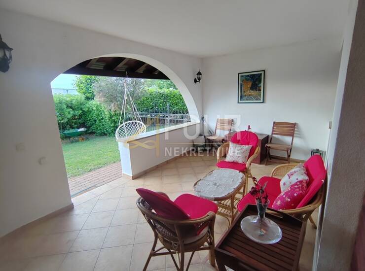 Stan se sastoji od ulaznog hodnika, kuhinje s blagovaonicom i prostranog dnevnog boravka s izlazom na natkrivenu terasu i okućnicu, dvije spavaće sobe te kupaonice.
