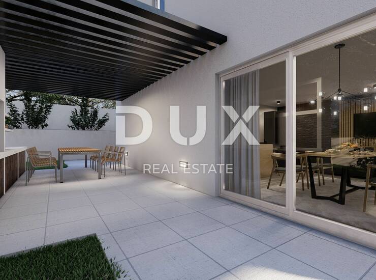 Moramo se pohvaliti kako smo na prodaju dobili dvojnu kuću sa 3 prostrane spavaće sobe, a nalazi se u prekrasnoj novogradnji te predstavlja vrhunac elegancije i udobnosti. Svaka spavaća soba ima svoju ekskluzivnu kupaonicu i WC, pružajući neviđeni luksuz i privatnost. Dnevna zona u kojoj se nalaze kuhinja, dnevni boravak i blagovaonica očarava svojom prostranošću i dizajnom, idealna je za okupljanje s obitelji i prijateljima, ima pristup terasi gdje možete uživati u spektakularnom pogledu na okoliš i more. Ostava je dodatni praktični element ovog stana, pružajući dovoljno prostora za pohranu.