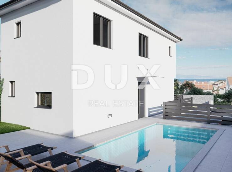 MALINSKA, TEREN S PROJEKTOM ZA DVOJNU KUĆU S DVA BAZENA