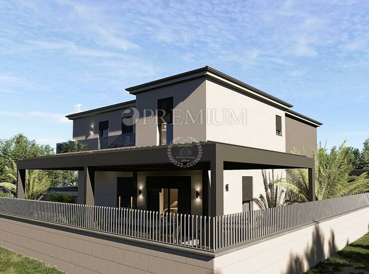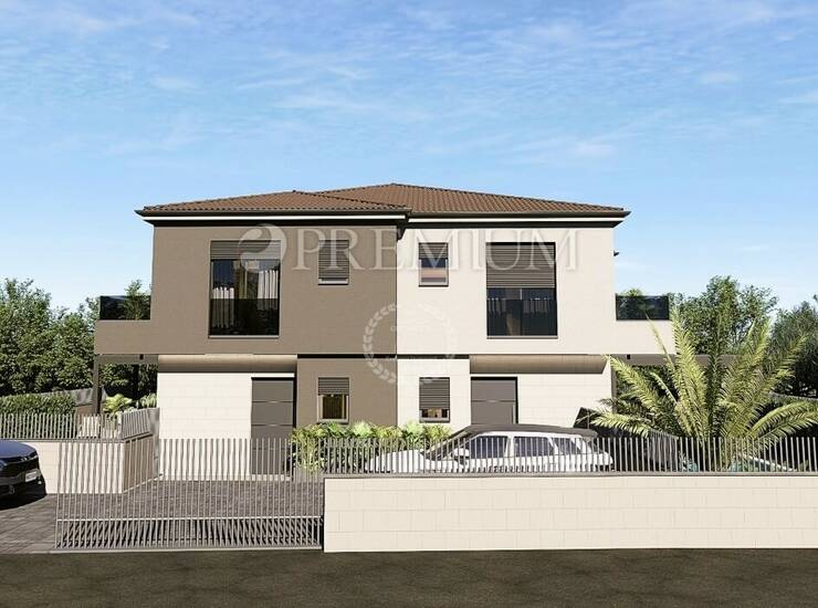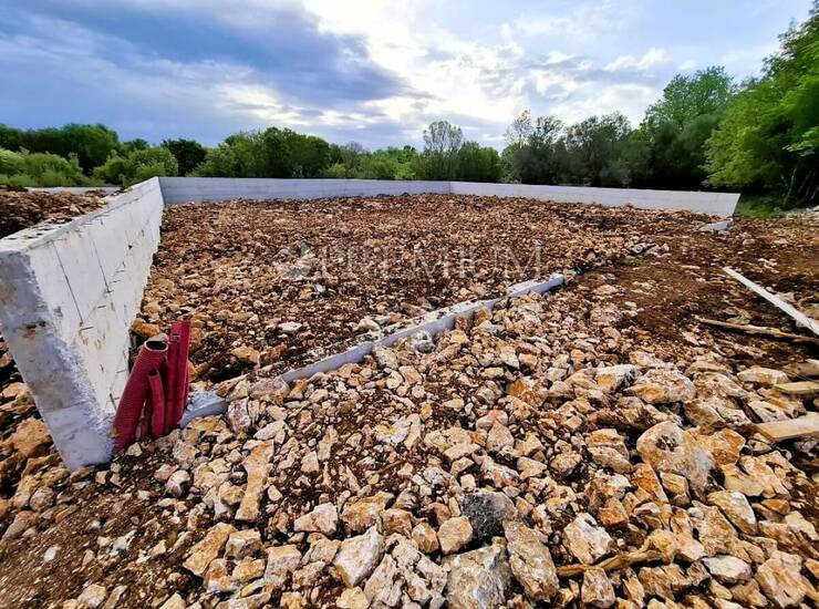 Malinska, okolica, prodaja, građevinsko zemljište površine 511 m2 s projektom za modernu dvojnu kuću!