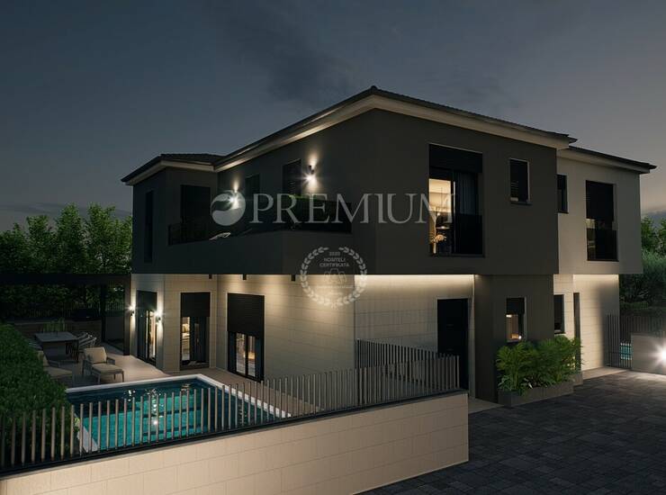 Svaka stambena jedinica ima prizemlje neto površine 55 m² koje se sastoji se od dnevnog boravka otvorenog koncepta spojenog s kuhinjom i blagovaonicom, gostinjskog WC-a i spremišta. Iz dnevnog boravka izlazi se na natkrivenu terasu i uređeni vrt u mediteranskom stilu s bazenom 21 m2 i sunčalištem. Kat, površine 62 m², obuhvaća master spavaću sobu s kupaonicom, dvije spavaće sobe, kupaonicu i terasu.