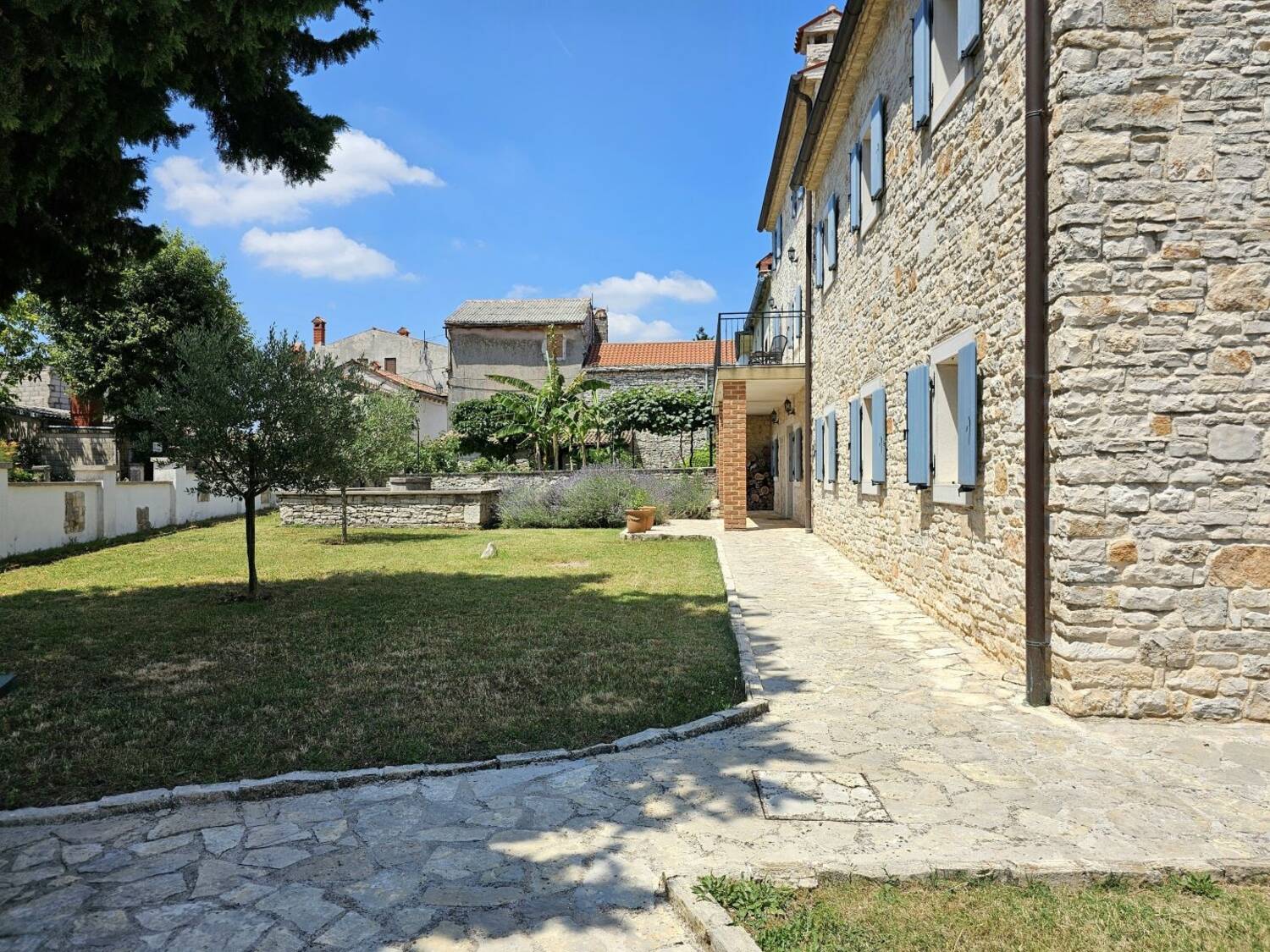 Riječ je o kamenoj vili koja se sastoji od ukupno 500m2 stambenoga prostora, podijeljenog na 3 etaže, prizemlje, prvi i drugi kat.