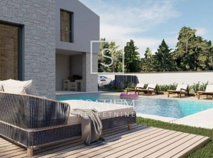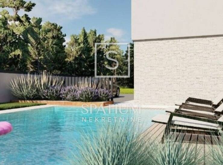 KRNICA, u ponudi imamo dvojni objekt u izgradnji, prodaje se jedna stambena jedinica ukupne površine 157 m², raspoređena na prizemlje i kat. U prizemlju se nalazi prostrani open space koncept dnevnog boravka, blagovaonice i kuhinje s izlazom na natkrivenu terasu s ljetnom kuhinjom, koja vodi prema bazenu i sunčalištu, stvarajući idealan prostor za boravak na otvorenom i druženja. U prizemlju su još hodnik, gostinjski toalet i vešeraj, a na katu su smještene tri komforne spavaće sobe, svaka s vlastitom kupaonicom. S kata se pruža pogled na more udaljeno svega 3 km. Okućnica je uređena te raspolaže s dva parkirna mjesta. Nekretnina se nalazi u prvoj fazi izgradnje, što budućem kupcu omogućuje sudjelovanje u završnim detaljima prema vlastitim željama.
