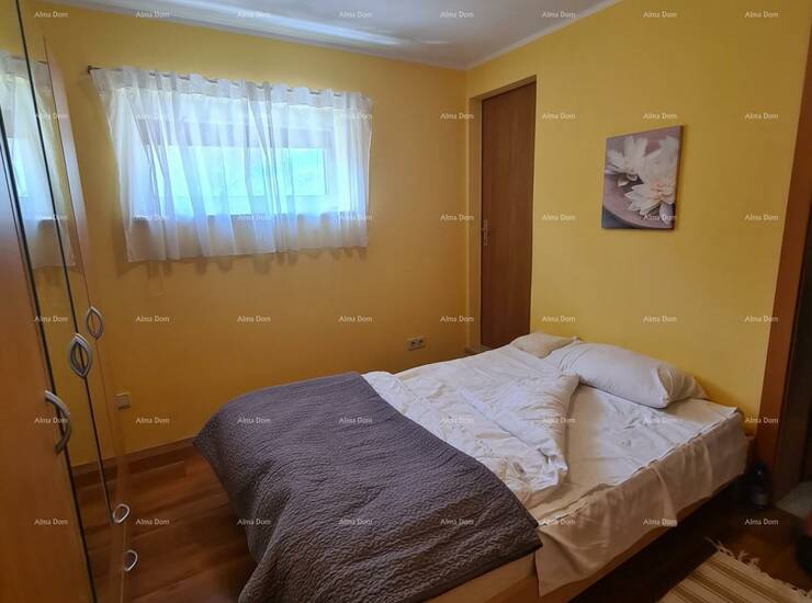 Pored garaže se smjestio jedan manji jednosoban apartman. Na katu kuće se nalazi stan s hodnikom, dvije spavaće sobe, kuhinje s dnevnim boravkom i blagavaonicom te kupaonica i toalet. Velika terasa s pogledom na more.