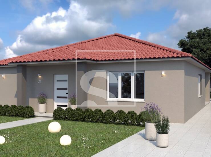 Kuća se nalazi na zemljištu površine 634m2, koncipirana je kao samostojeća prizemnica te je ukupne neto stambene površine 154m2. Sastoji se od ulaznog prostora koji povezuje sve dijelove kuće te u kojem se nalazi praktično spremište te tehnička prostorija, središnji dio čini otvoreni koncept dnevnog boravka, blagovaonice i kuhinje (open space) s izlazom na natkrivenu terasu te bazen. U kući nalaze se još i tri komotne i udobne spavaće sobe te dvije moderno opremljene kupaonice. Glavna spavaća soba, odnosno master soba ima vlastitu kupaonicu.
