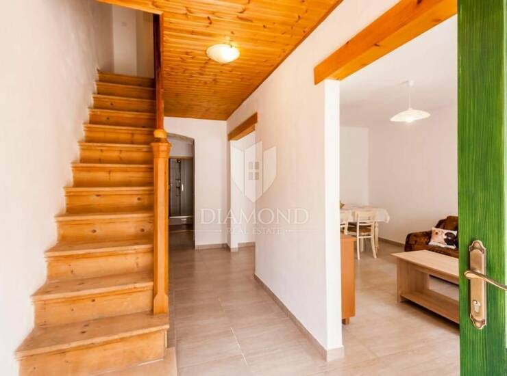 Na mirnoj lokaciji u Marčani, prodaje se adaptirana kuća u tradicionalnom istarskom stilu, gdje dominiraju prirodni materijali poput drva i kamena.