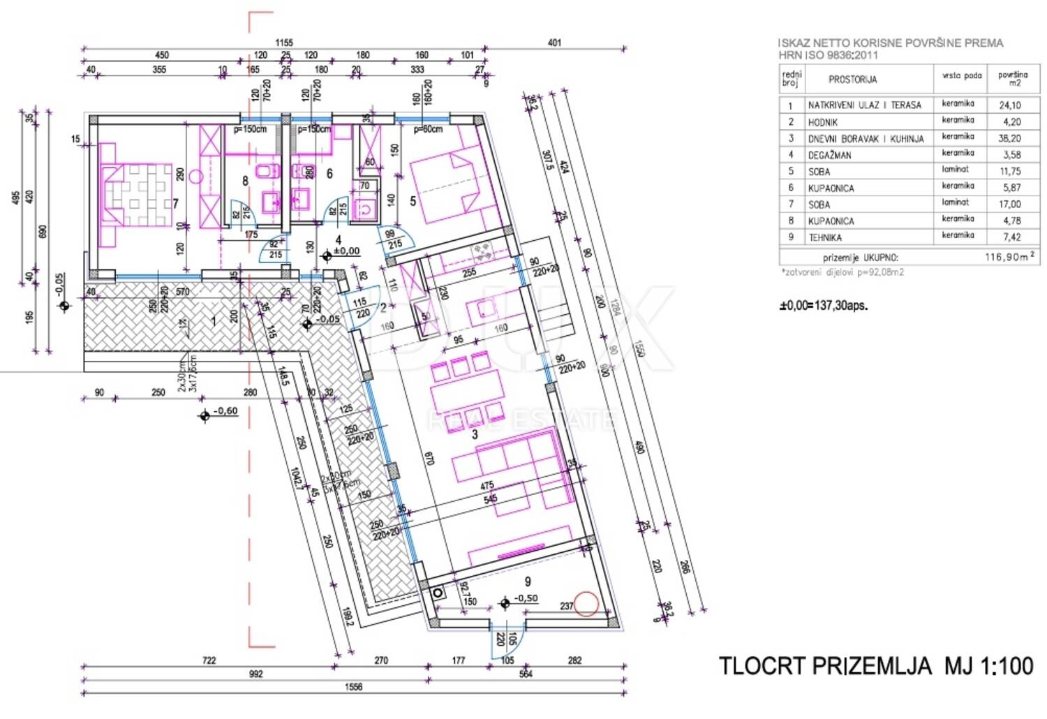 Nekretnina se odlikuje suvremenim dizajnom, funkcionalnim rasporedom i visokom energetskom učinkovitošću – energetski razred A+.