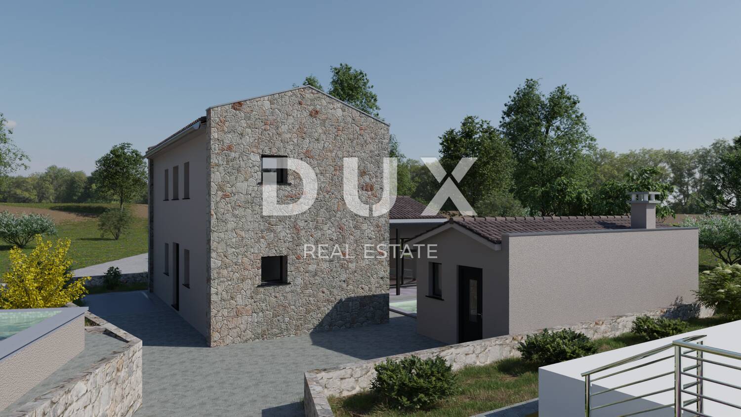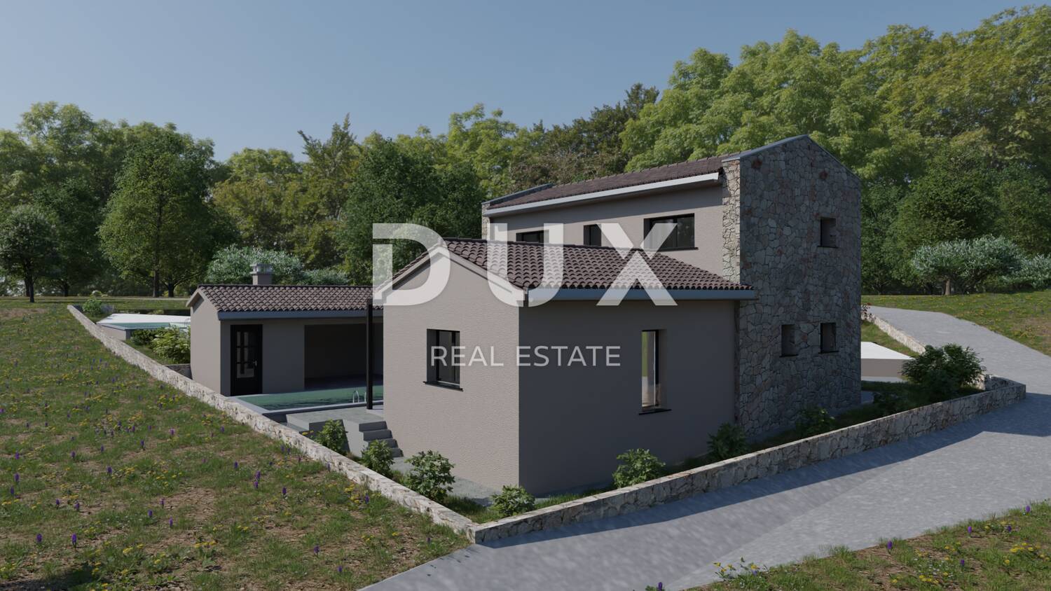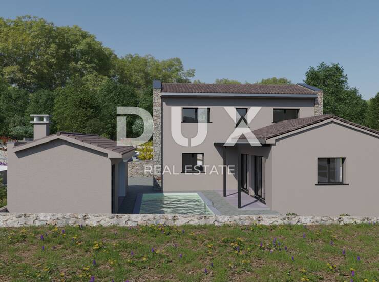 U malom i slikovitom istarskom selu, smještenom u Općini Marčana, na svega 10 km od grada Vodnjana, uskoro počinje gradnja moderne ville. Ova luksuzna villa prostirat će se na netto stambenoj površini od 124 m², smještenoj na parceli od 463 m². Projekt obuhvaća katnicu s jedne strane i prizemnicu s druge. Villa će imati bazen površine 27 m², a uz to će biti i pomoćni objekt od 29 m² s kaminom, koji će služiti kao ljetna kuhinja s velikim kliznim staklenim stijenama.