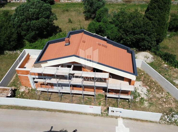 Prodajemo modernu kuću u izgradnji, smještenu na atraktivnoj lokaciji s predivnim pogledom na more. Gradnja je započela krajem 2023. godine, a kuća obećava luksuzan i udoban životni prostor.