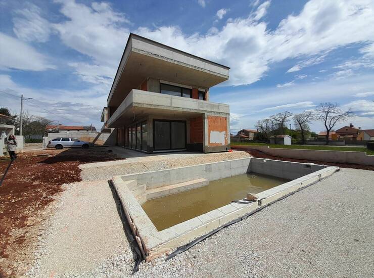 Na prodaju su dvije moderne vile u izgradnji, površinom od 235m2 i svaka sa svojim vanjskim bazenom ( dvije identične vile jedna do druge sa zajedničkim zidom ).