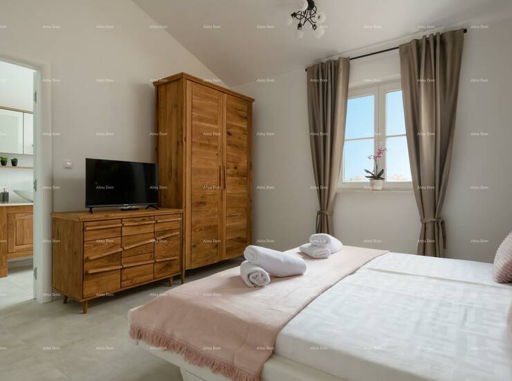 U prizemlju se nalaze moderna kuhinja, blagovaonica, ostava, prostrani dnevni boravak s kaminom, toalet te jedna spavaća soba s vlastitom kupaonicom. Na katu su smještene još tri spavaće sobe, svaka s vlastitom kupaonicom, što pruža maksimalnu privatnost i komfor.