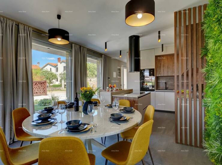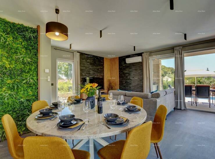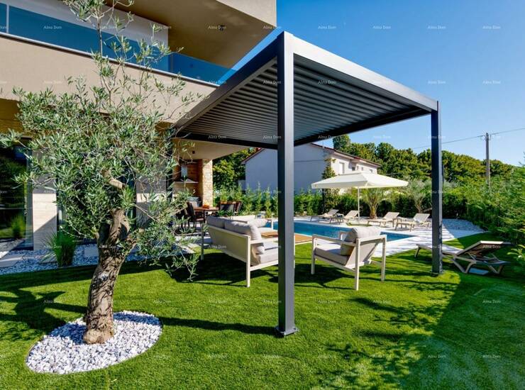 Na prodaju je moderna vila vrhunske kvalitete, izgrađena s naglaskom na visoke standarde, udobnost i privatnost. Smještena je na prostranoj okućnici i okružena zelenilom, pružajući mirno i luksuzno okruženje za boravak i odmor.