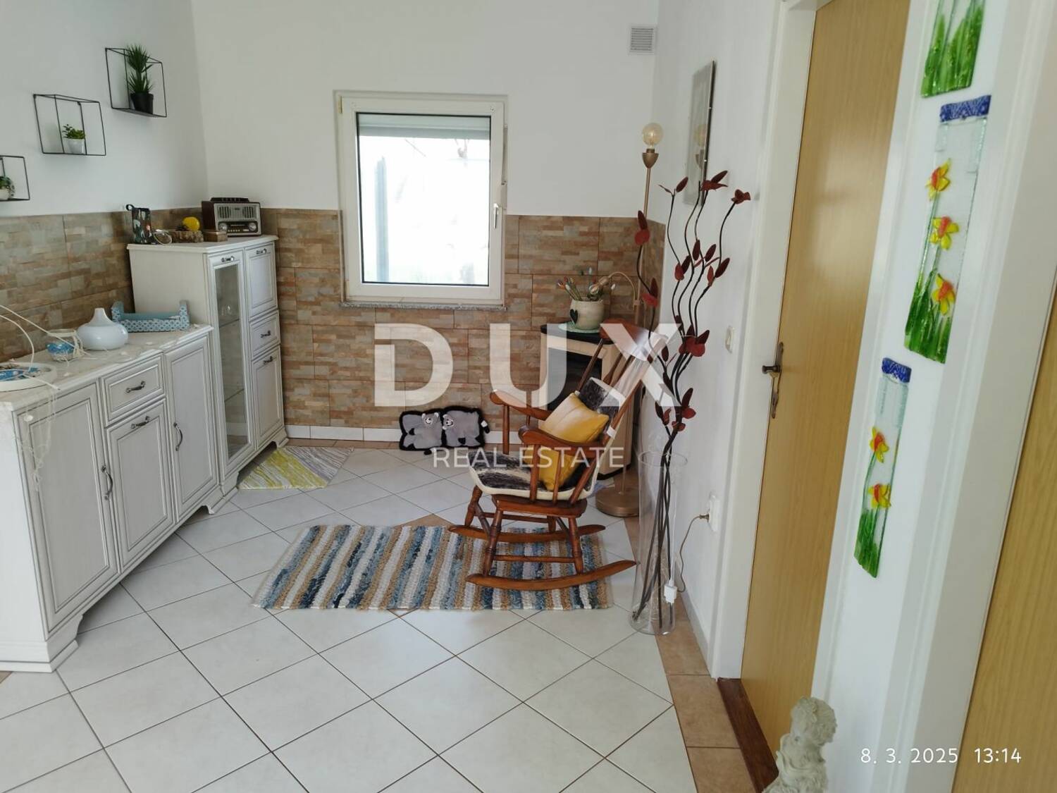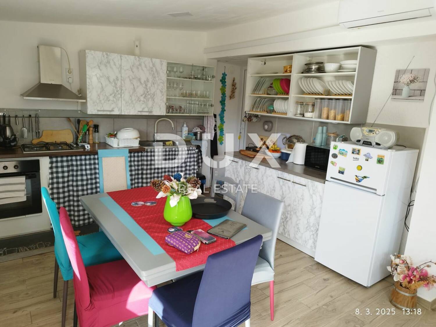 Prodaje se prizemnica s okućnicom i parkingom, u blizini plaže. Kuća ima 74 m2 i izgrađena je 2012. godine. Grijanje i hlađenje osigurano je s dva klima uređaja. Prozori su novi, kao i električne rolete. Ulazna vrata su također nova. U dvorištu se nalazi i mala zgrada koja služi kao spremište. Trgovina je udaljena 1 km, a plaža 2 km. Lijepo, mirno mjesto, pogodno za život.