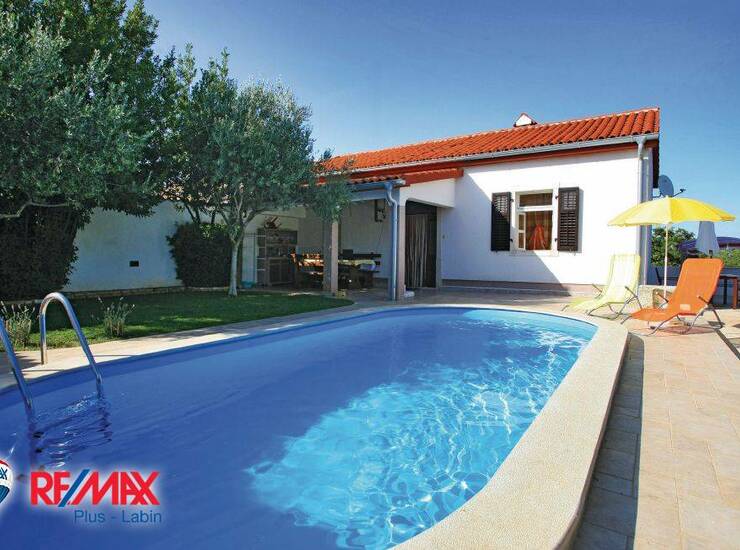 Na lijepo uređenoj i ograđenoj okućnici smjestio se bazen, zasebno spremište, vanjski tuš, roštilj i natkriveno parkiralište te garaža.