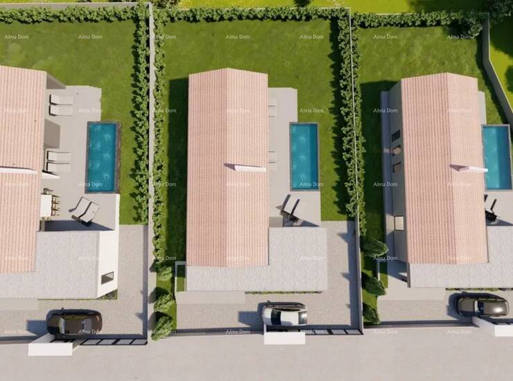 Poseban naglasak stavljen je na vanjski prostor koji uključuje dvije natkrivene terase površina 11,92 m² i 12,24 m² te privatni bazen i uređeno dvorište koje osigurava potpunu privatnost i ugodan boravak na otvorenom.