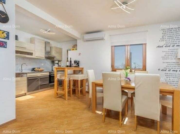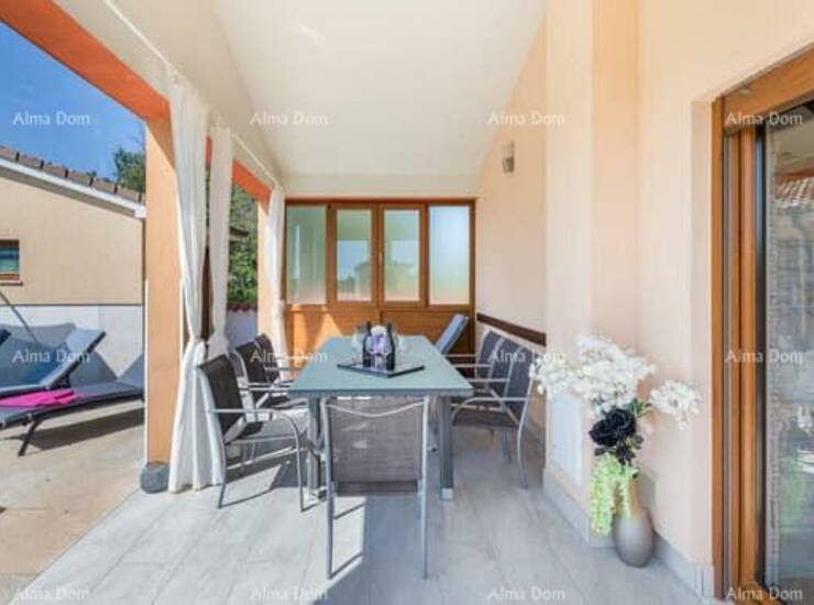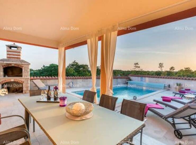 Prodajemo kuću, površine 160 m² sa grijanim bazenom u mirnom naselju blizu Marčana. Kuća se prostire na prizemlje i kat, uz uređenu okućnicu od 400 m².