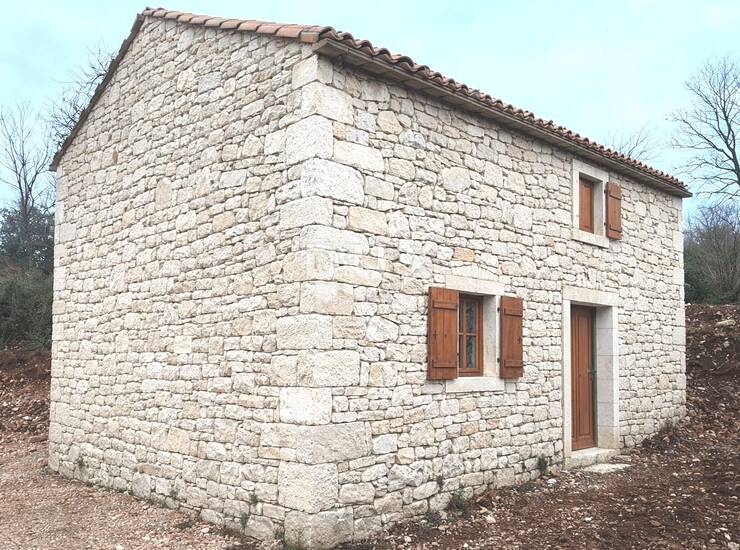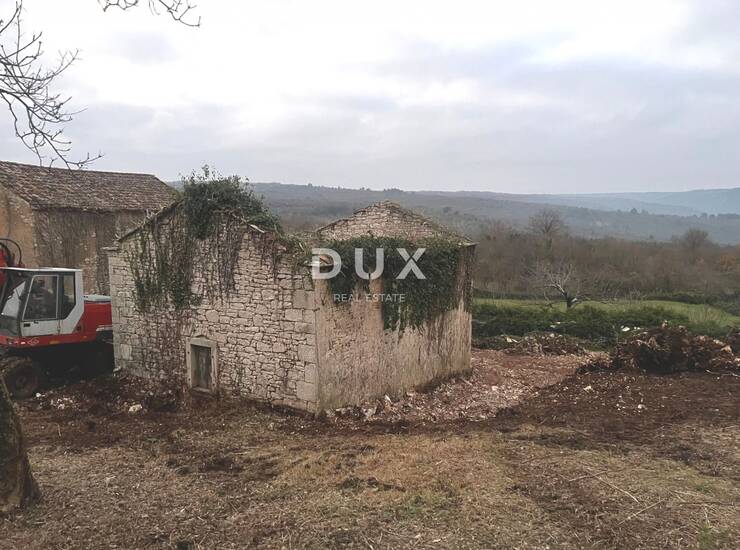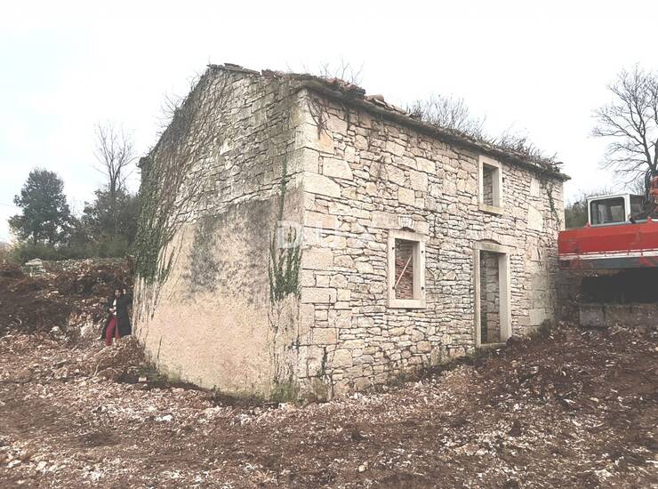 U zadnjoj građevinskoj liniji, smjestila se ova kamena istarska starina za adaptaciju s puno potencijala. Nalazi se na građevinskom zemljištu od 856 m2. Kuća se proteže na 2 etaže: prizemlje i visoko potkrovlje ukupne stambene površine 100 m2. Kameni zidovi od 60 cm, dati će ovoj kamenoj kući dodatni istarski štih kroz kombinaciju kamena i drva koja krasi istarski poluotok. Struja i