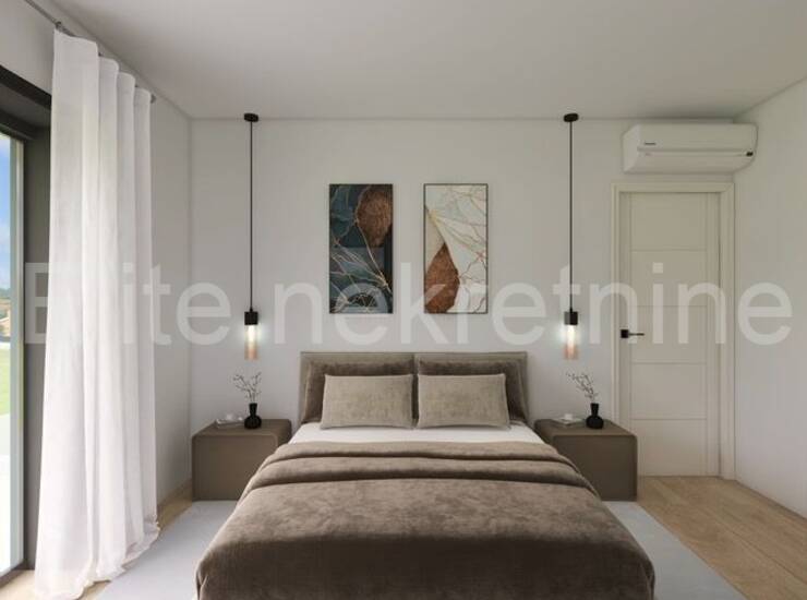 Vila će imati postavljene solarne panele, mogućnost grijanja na kamin, električno podno grijanje na Wi-Fi,Postavljene pločice u prizemlju i parket u spavaćim sobama na katu.