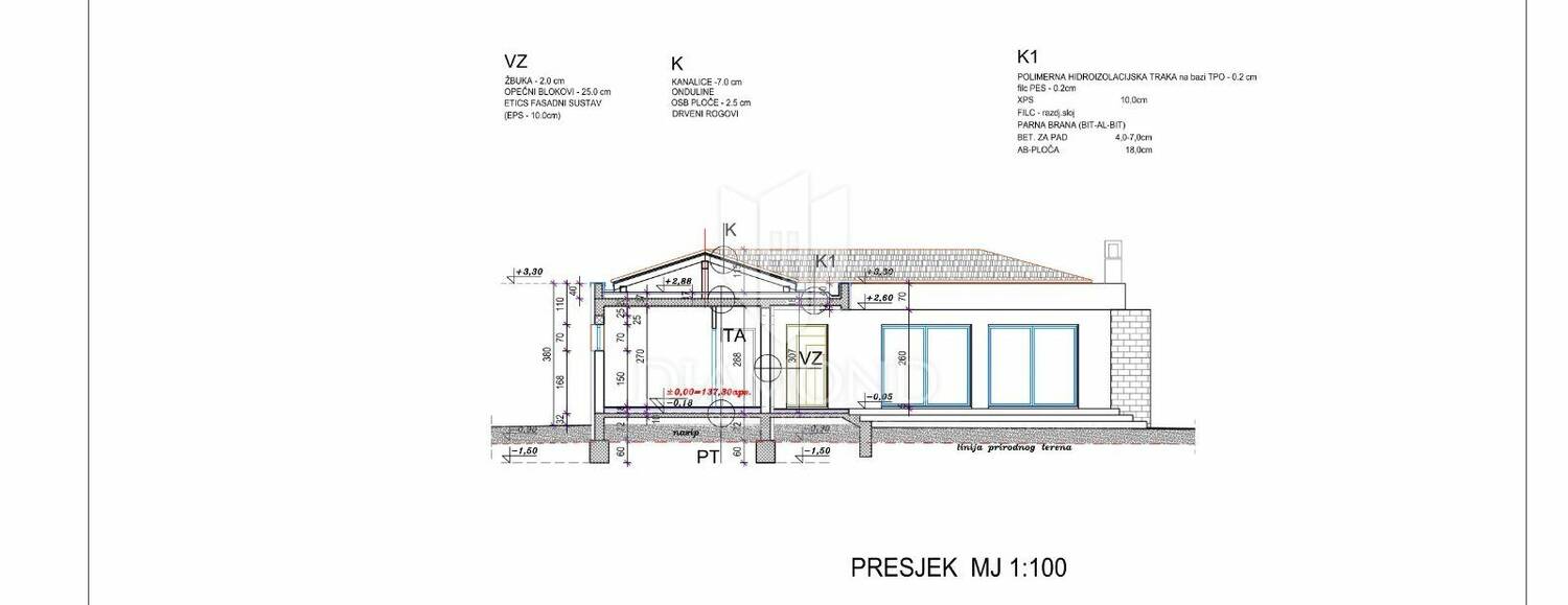 U blizini Pule, U mirnom i atraktivnom okruženju, idealnom za obiteljski život ili turističko iznajmljivanje, na prodaju je moderna prizemna kuća u RohBau fazi, ukupne stambene površine 117 m², s privatnim bazenom od 35 m².