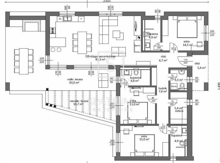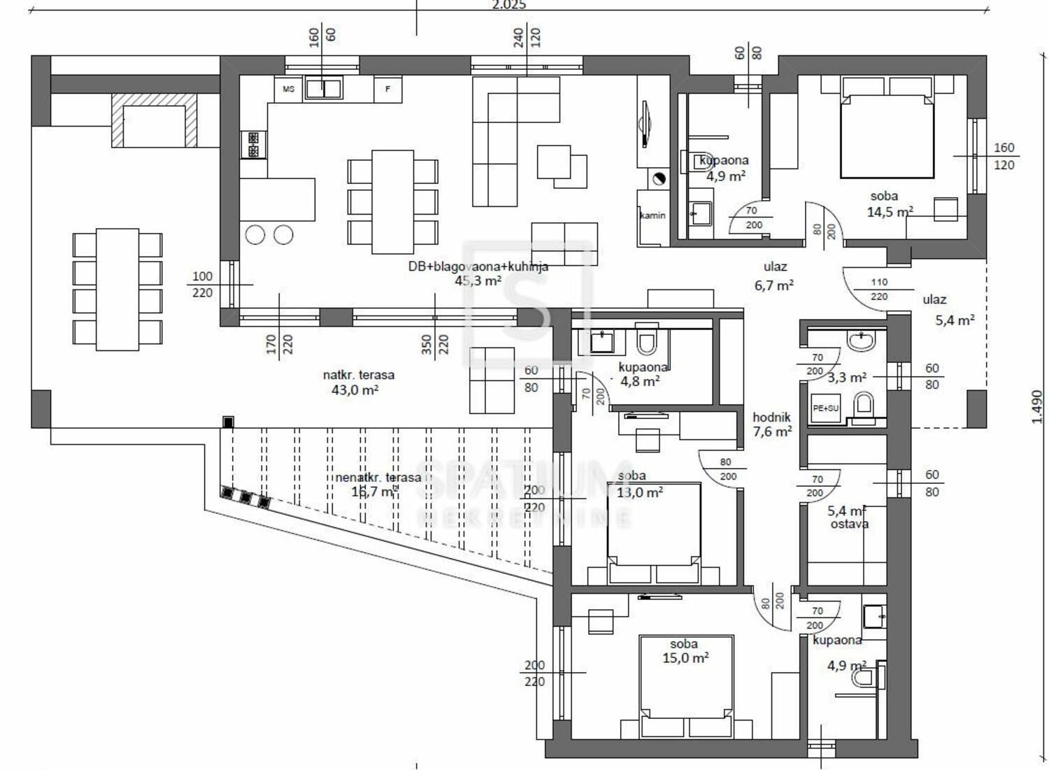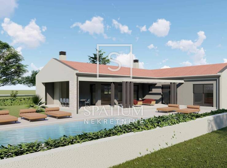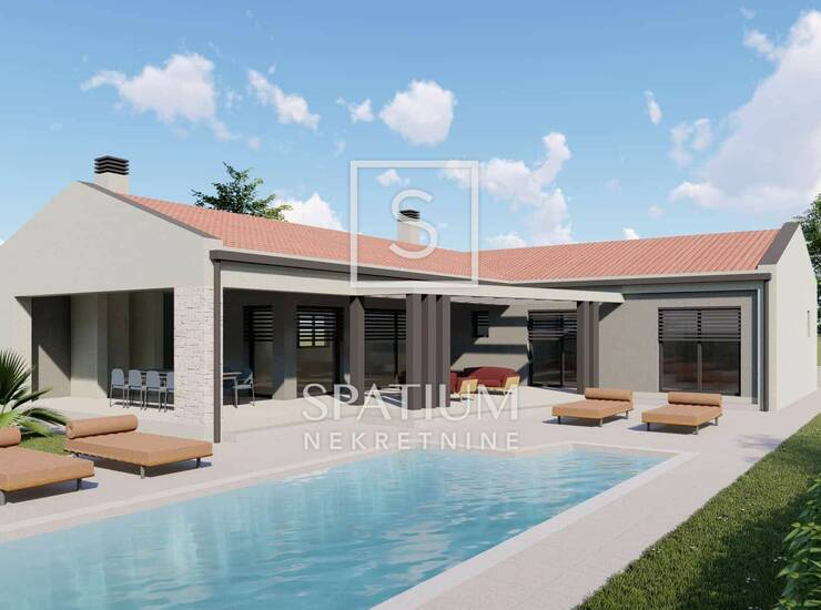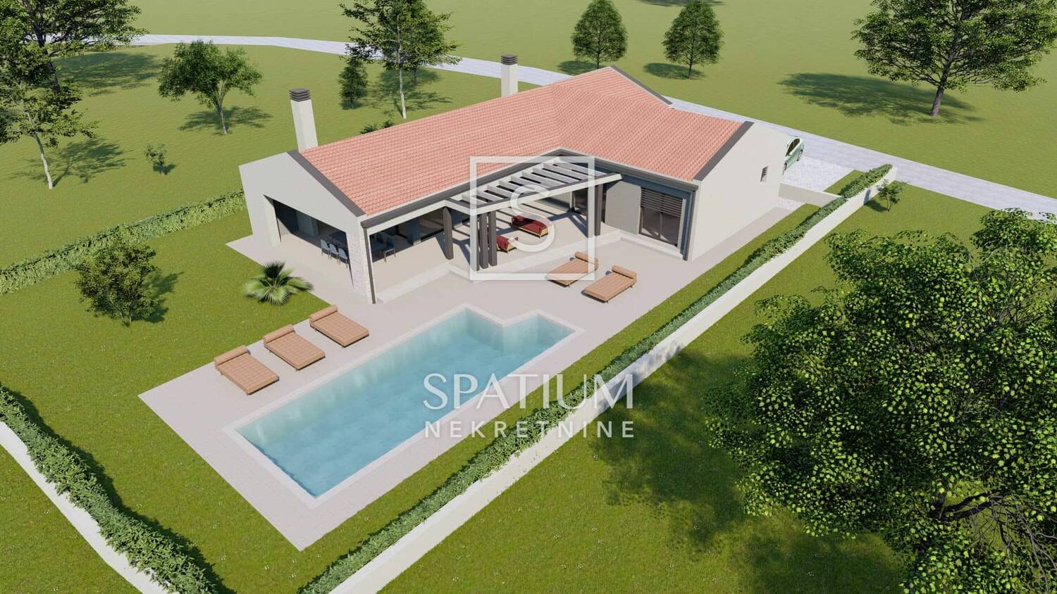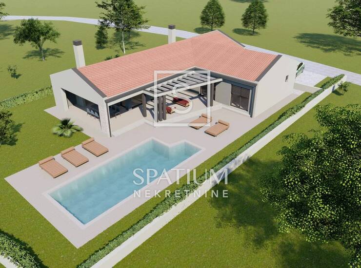 KRNICA, u ponudi imamo građevinsko zemljište površine 845 m² s pravomoćnom građevinskom dozvolom i plaćenim komunalnim i vodnim doprinosima. Parcela je pravilnog oblika, ravna i ima osiguran pristup s javnog puta te je smještena na mirnoj lokaciji svega 3 km od mora. Projektom je predviđena moderna vila bruto površine 190 m², s tri spavaće sobe svaka s vlastitom kupaonicom, prostranim dnevnim boravkom povezanim s kuhinjom i blagovaonicom, dodatnim WC-om, ostavom i vešerajem. U vanjskom dijelu planiran je bazen površine 45 m² s terasom i vanjskim tušem. Priključak struje je djelomično plaćen dok je postupak priključenja na vodovod u tijeku.