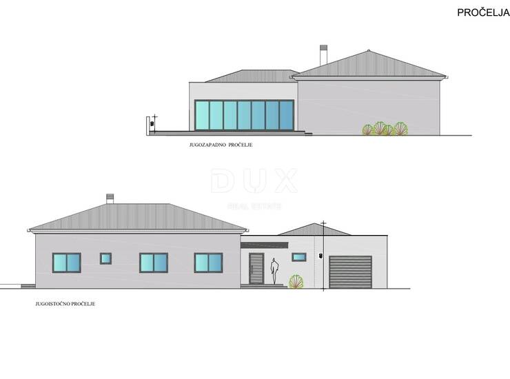 Kuća ima netto površinu od 174 m2, a sastoji se od natkrivenog ulaznog trijema, 2 hodnika, utility, konoba, tri velike spavaće sobe od kojih jedna s vlastitom kupaonicom i predprostorom. Tu su još dvije kupaonice, kuhinja s blagovaonicom, dnevni boravak. Iz dnevnog dijela vrši se komunikacija s dvorištem na kojem je predviđeno sunčalište i bazen.