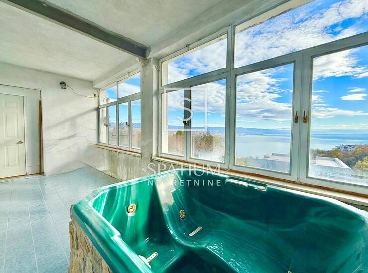 Kuća je idealno pozicionirana na Bregima te nudi spektakularan, otvoren pogled na more, Kvarner, otoke i cijeli grad Rijeku.