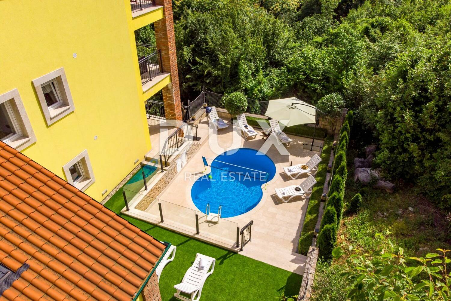OPATIJA, BREGI - Vila novogradnja u mediteranskom stilu s dvije stambene jedinice, bazenom, gostinjskom kućom, tavernom i dječjim igralištem