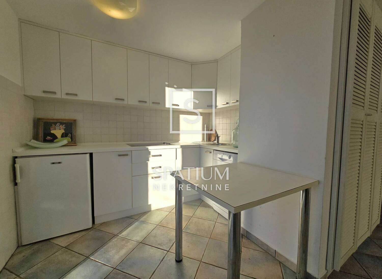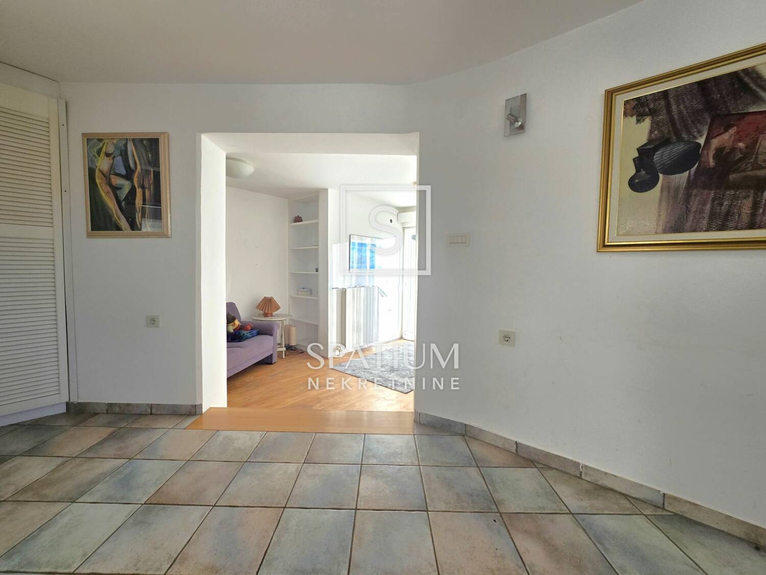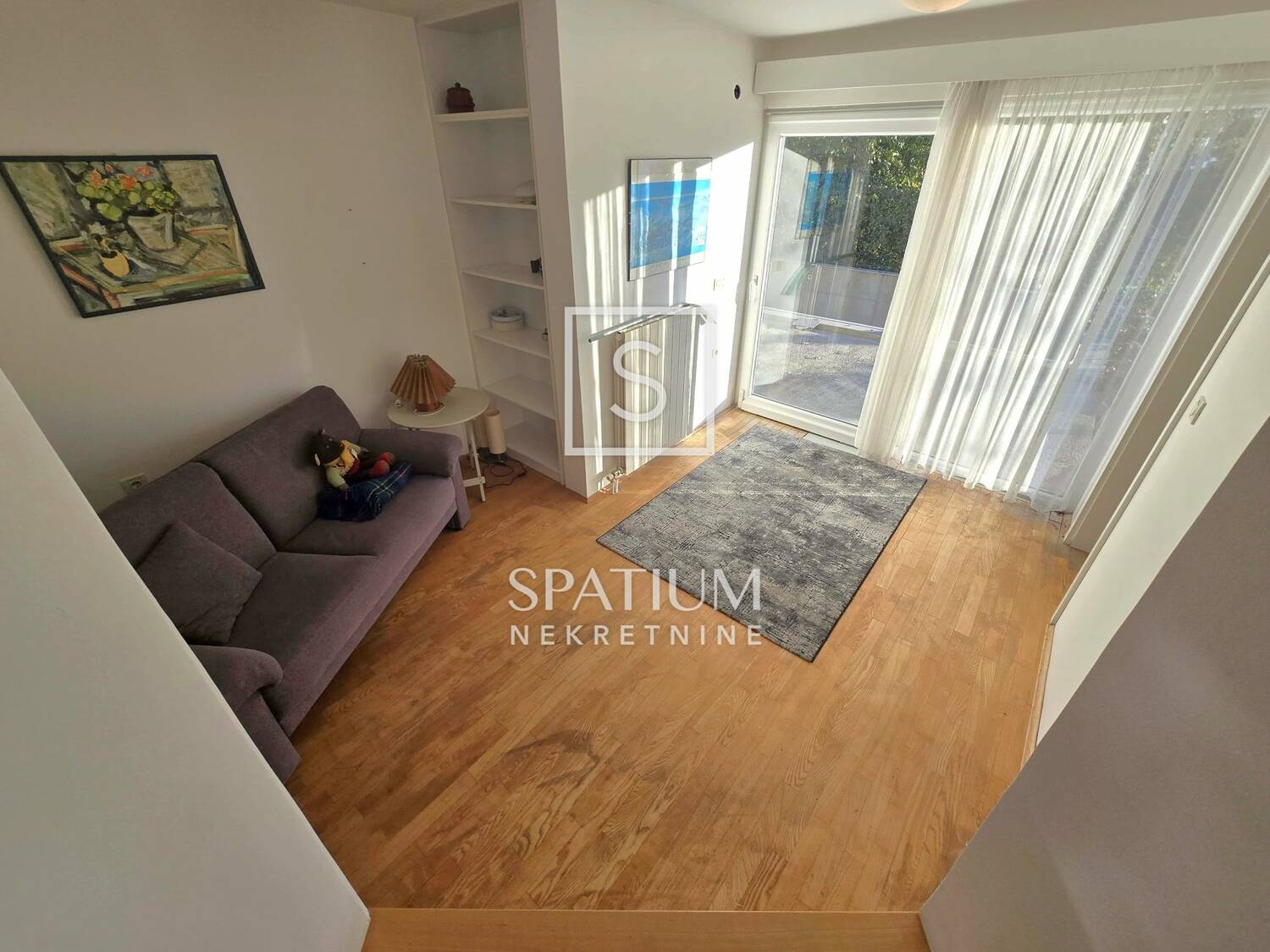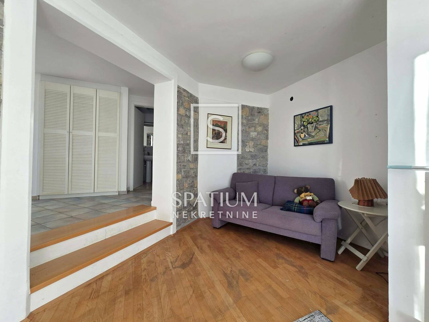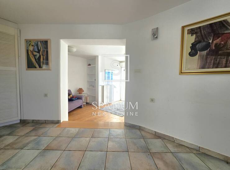 Garaža površine 36 m2 s galerijom koja služi kao ostava, nalazi se uz dodatni prostor za parking nekoliko automobila. Stepenište vodi kroz kaskade uređenog vrta do prizemlja gdje se uz kuću nalazi nedovršeni bazen. U prizemlju su jednosoban stan s dnevnim boravkom, kuhinjom i kupaonom i odvojeni prostor koji može služiti kao mini teretana, ured ili studio apartman koji uz jednu prostoriju koja gleda na bazen ima i kupaonu.