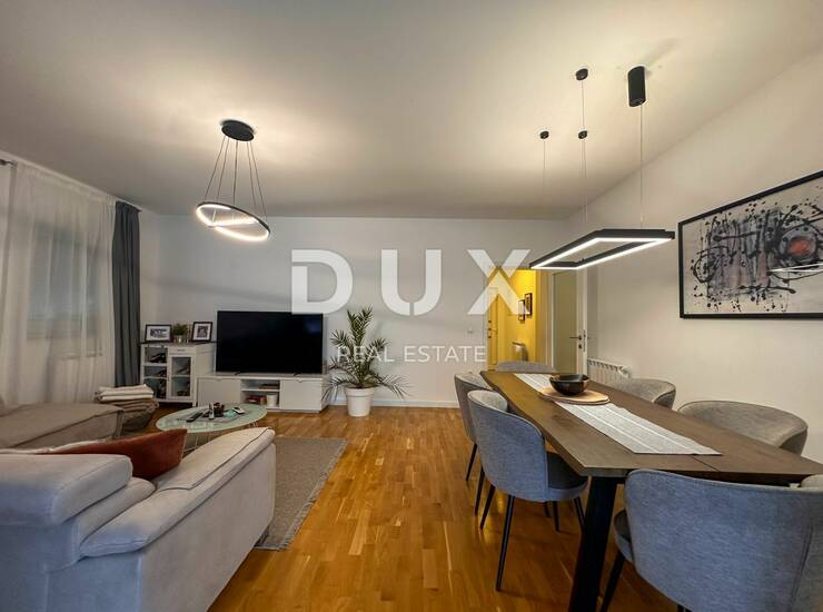 Kuća se proteže na tri etaže koje su pune svjetla i topline, osiguravajući ugodan boravak kroz cijelu godinu. Svaka etaža predstavlja luksuzno uređen stan s tri prostrane spavaće sobe, open space dnevnim boravkom s modernom kuhinjom i blagovaonicom te dvije elegantno uređene kupaonice. Stanovi su moderno opremljeni, koristeći najkvalitetnije materijale i uređaje, te dizajnirani s pažnjom na detalje kako bi pružili maksimalnu udobnost i funkcionalnost.