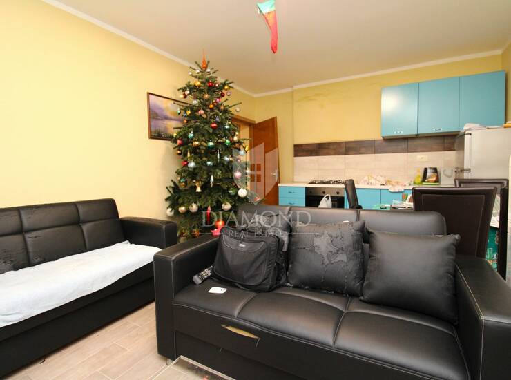 Sastoji se od dnevnog boravka s kuhinjom, spavaće sobe i kupaonice. Raspored je jasan i funkcionalan. Prije nekoliko godina u stanu su mijenjane sve instalacije.