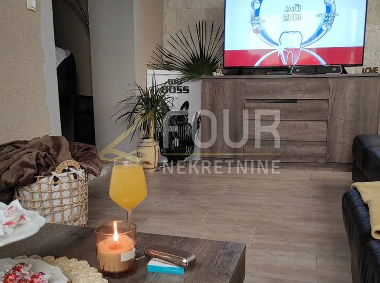 Prodaje se ugodan i potpuno namješten stan u prizemlju manje stambene zgrade s ukupno šest stanova. Sastoji se od dvije spavaće sobe, kuhinje s blagovaonicom i dnevnim boravkom, kupaonice te prostrane zatvorene terase od 14,70 m2 koja pruža dodatni komfor i privatnost. Ukupna stambena površina iznosi 59,85 m2.